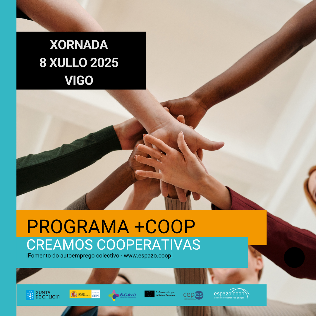 A Unión de Cooperativas que impulsa o programa +COOP en colaboración coa Rede Eusumo, Cepes e o FSE, co fin de prestar servizos de apoio á cidadanía para crear empresas cooperativas e acceder ao emprego, celebrará a súa xornada de peche o vindeiro 8 de xullo en Vigo.