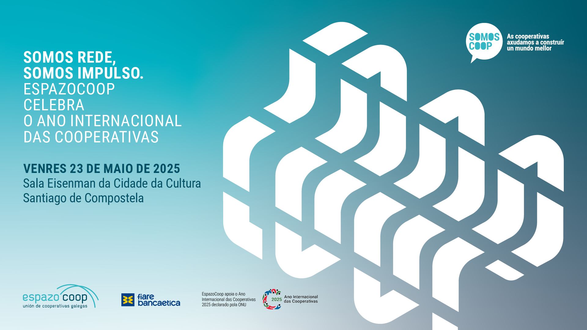 A Unión de Cooperativas EspazoCoop, celebra o venres 23 de maio a partir das 12 h. un evento público para celebrar o Ano Internacional das Cooperativas 2025 baixo o lema “Somos Rede, Somos Impulso“, o acto realízase na Cidade da Cultura de Santiago de Compostela, no marco do día da asemblea xeral de EspazoCoop.